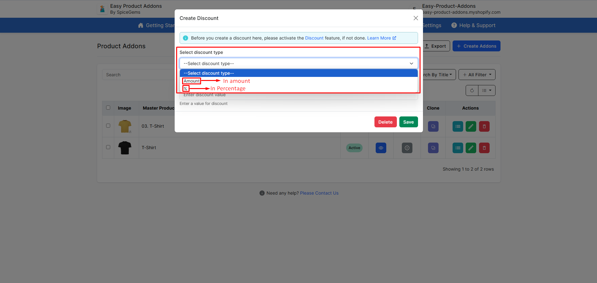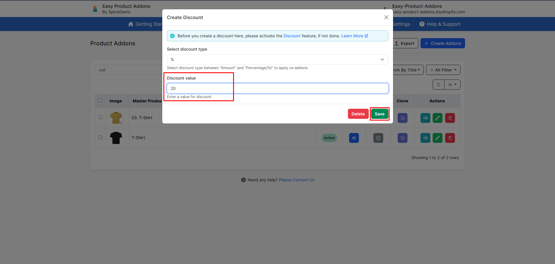 * Create a discount for Product Addons or Collection Addons (the process is same for both options)