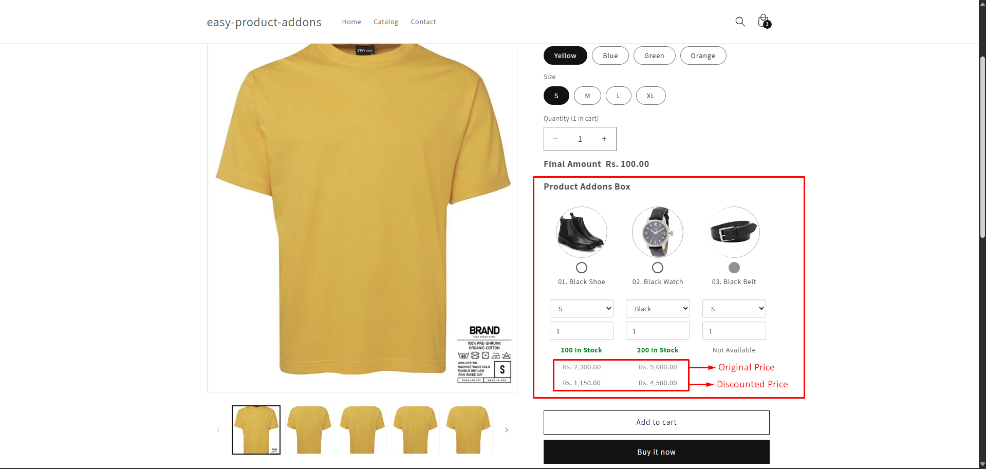 The Discount Feature enables store owners to offer flexible, automatic discounts on product add-ons, enhancing the customer experience while increasing upsell opportunities.