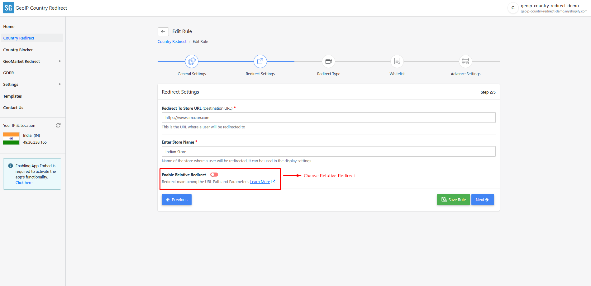 The app has a "**Relative redirect**" feature which is the functionality to **redirect the visitors to the exact same page path as the destination URL.**