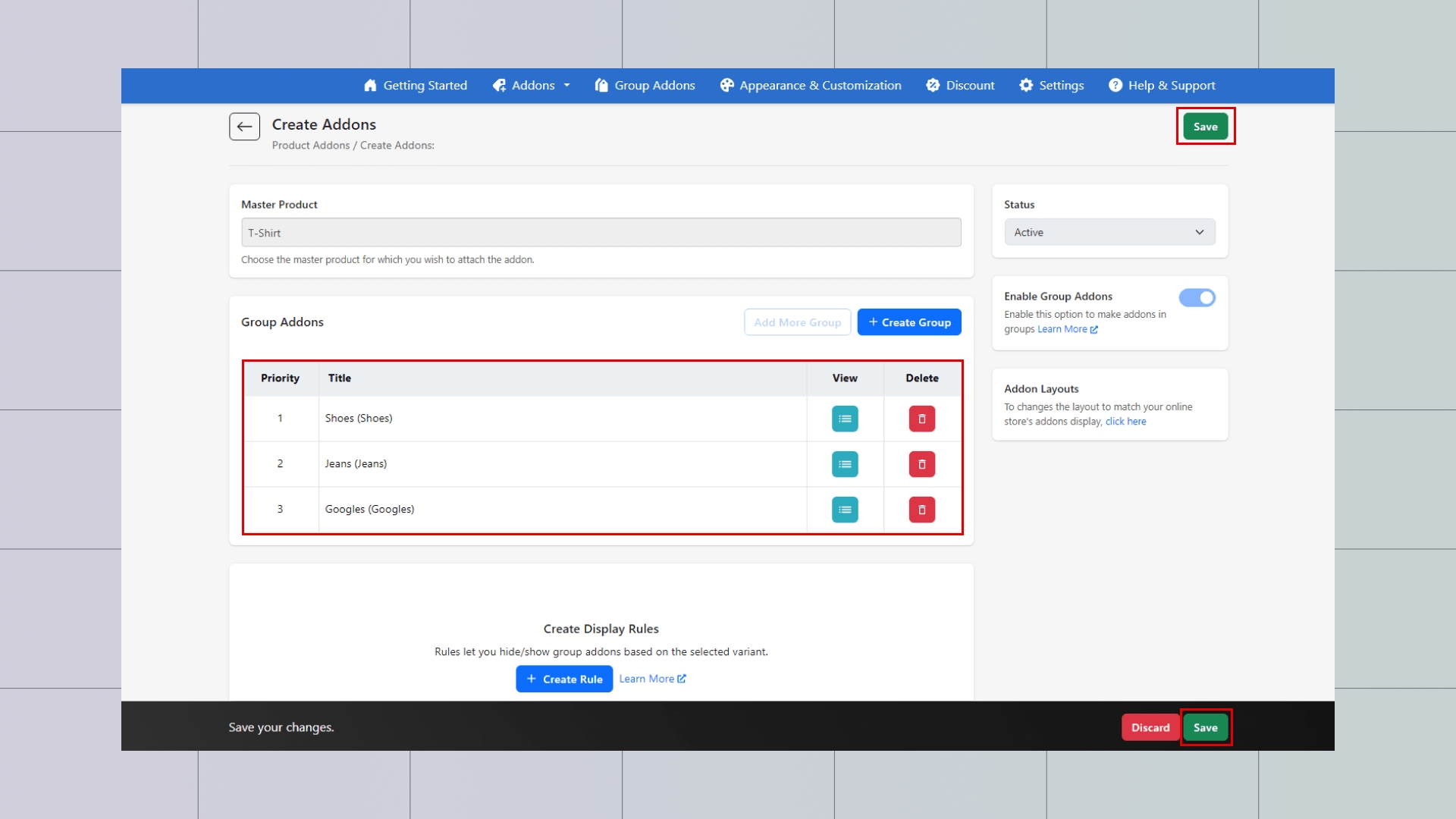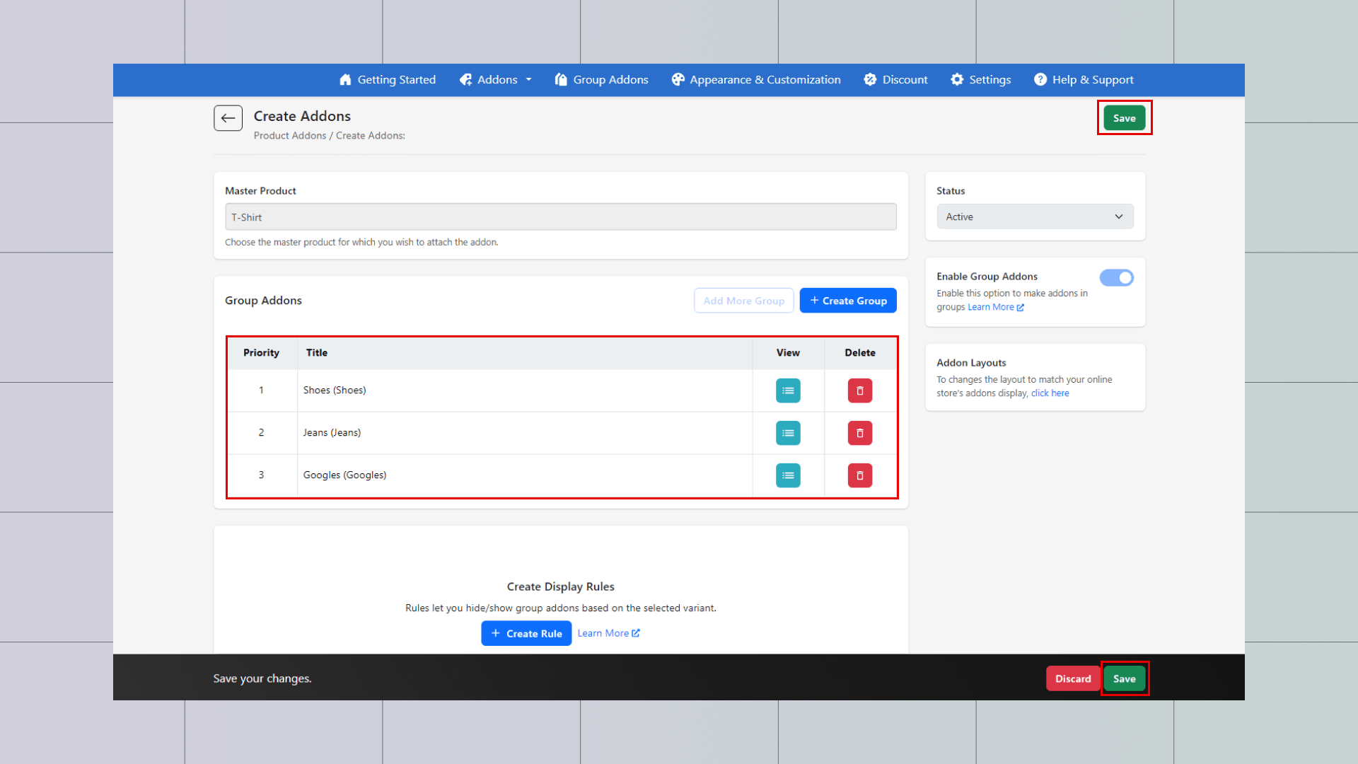 Select Master Product ( for Product Addon) – here we have associated the group with product addons, or Select Collection (for Collection Addons)